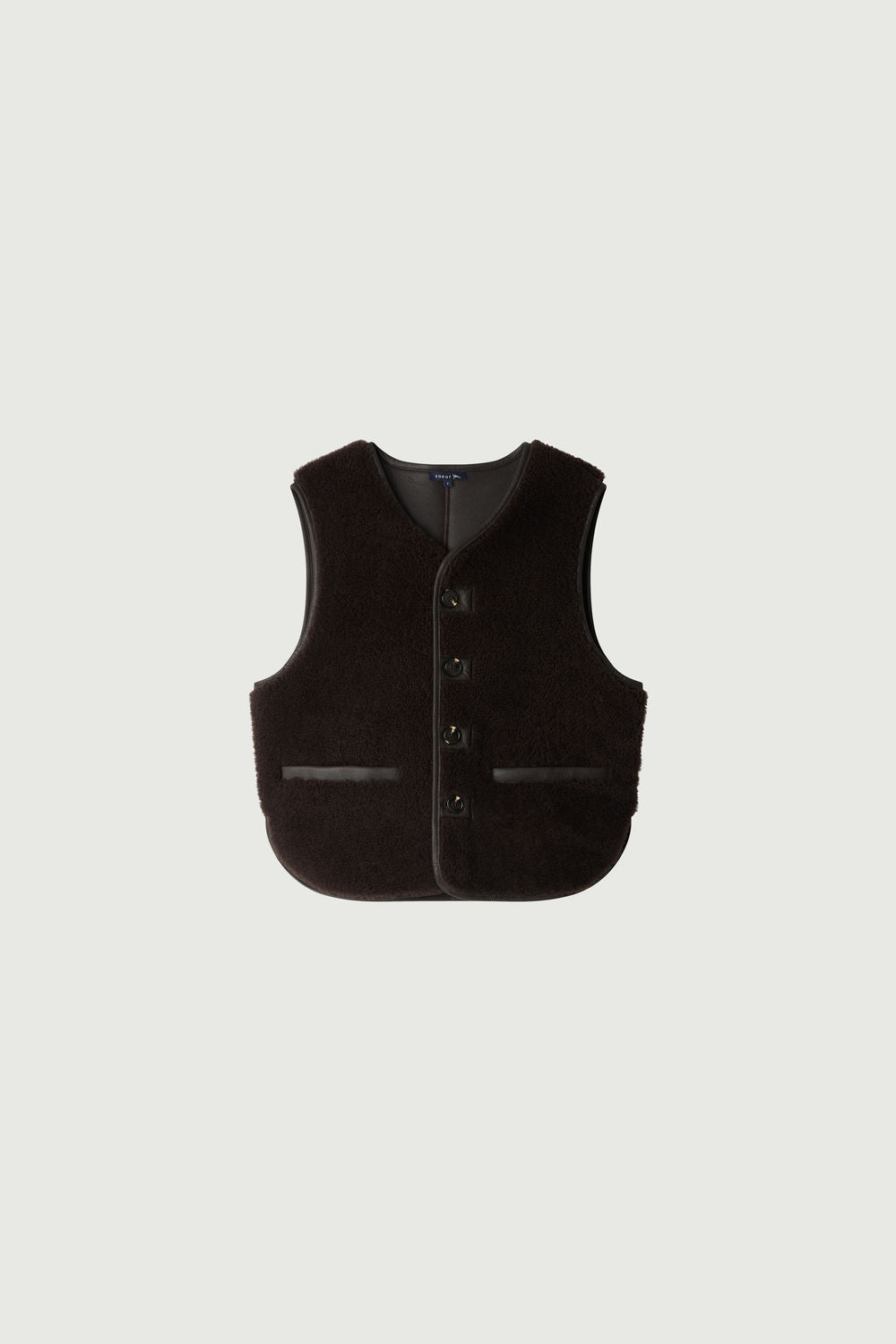 BONIFACIO es una cazadora sin mangas. Su cuero auténtico con tacto suave aporta un acabado elegante a este tejido cálido. Está pensado como un chaleco para estilizar infinitamente. Ideal para llevar debajo de un abrigo sin limitar el movimiento, o para superponer sobre un simple jersey de punto.