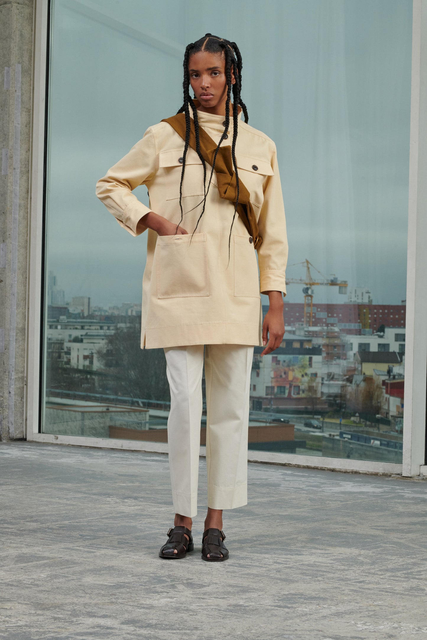 La mannequin mide 1m80 (5'11) y usa una talla 36.