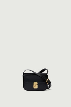 Tarjetero con solapa monograma «S» de piel glacé negra negro