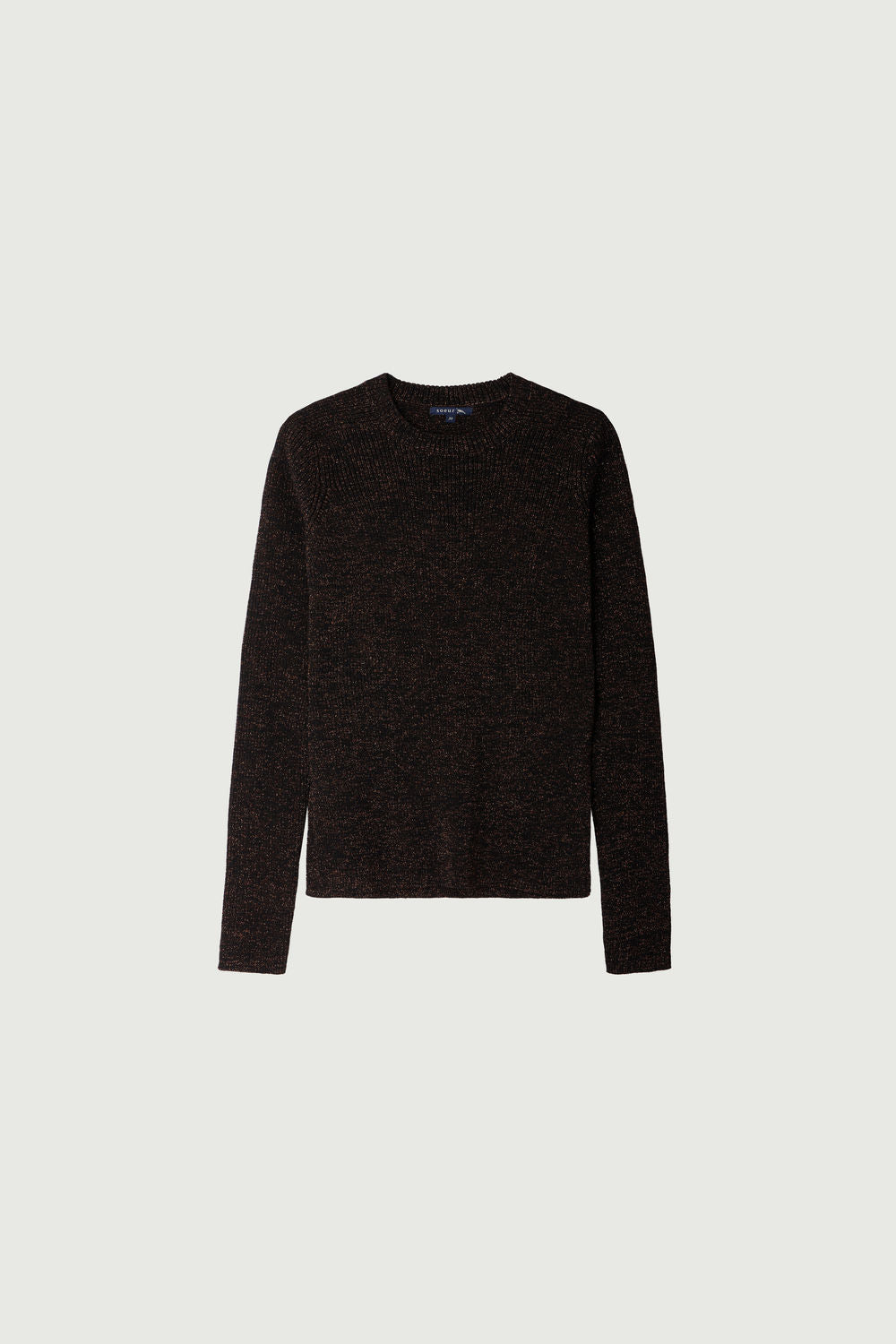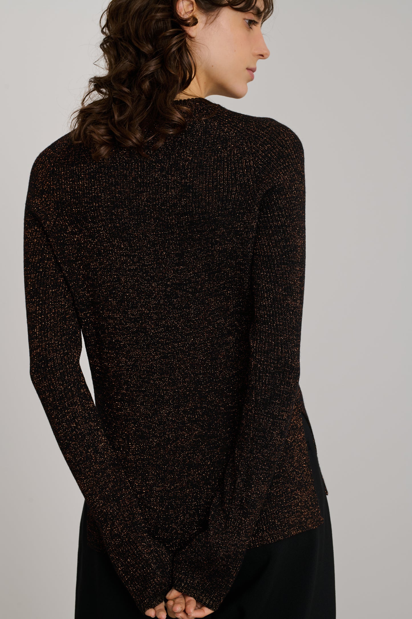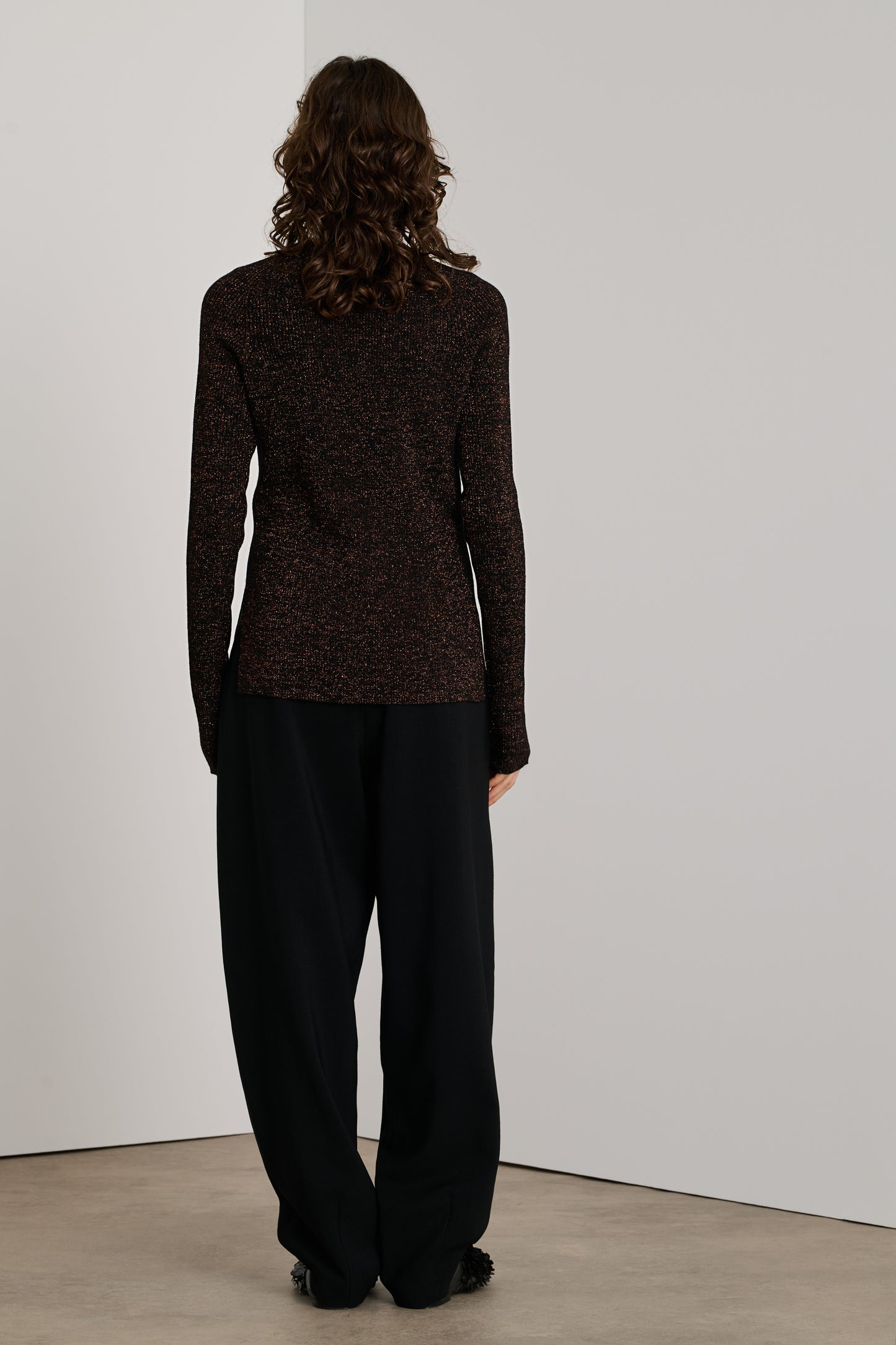 Jersey de canalé de manga larga en lúrex negro/caramelo