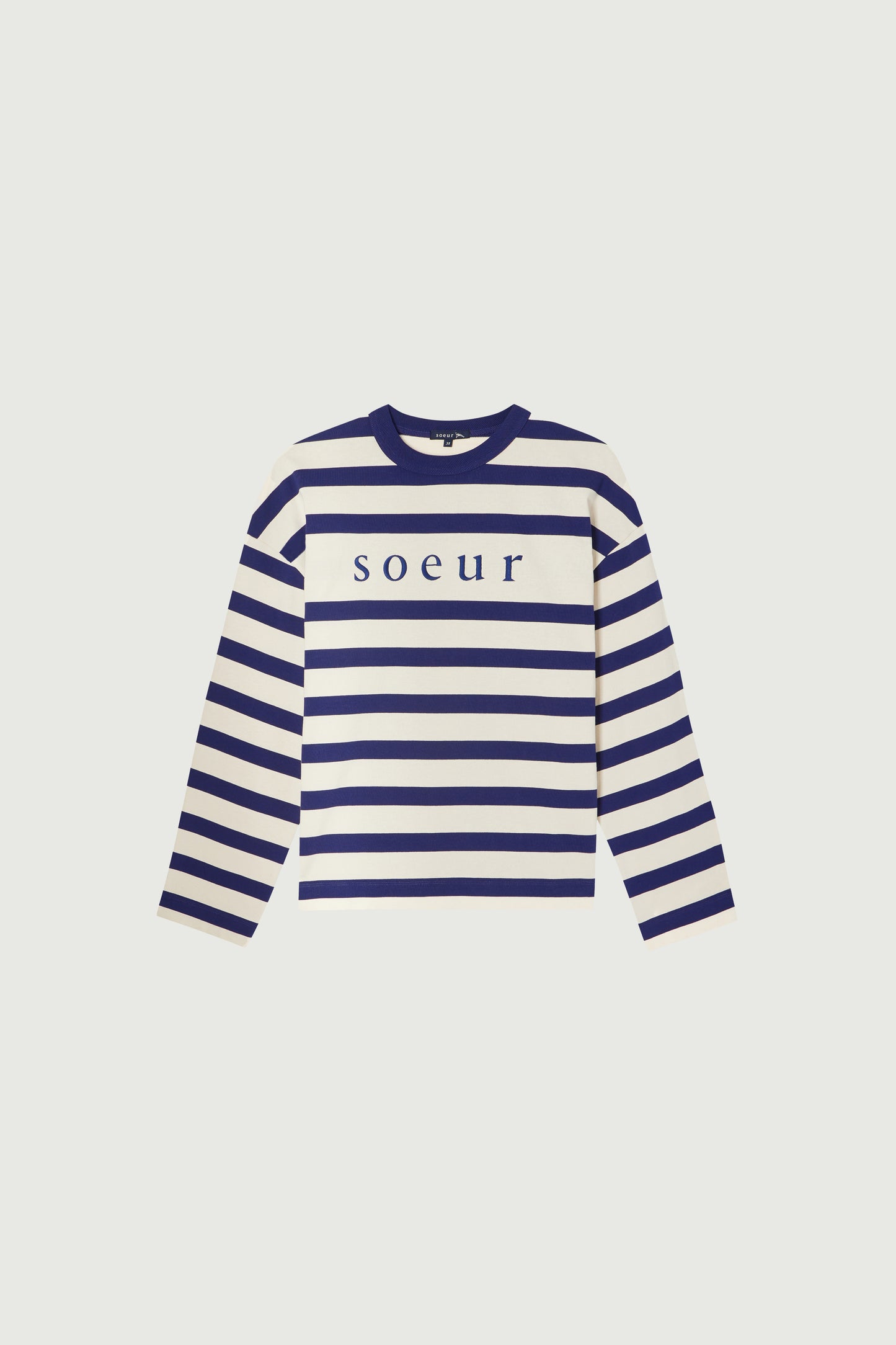 Camiseta marinera de manga larga con logotipo «Sœur» bordado en algodón crudo y azul marino